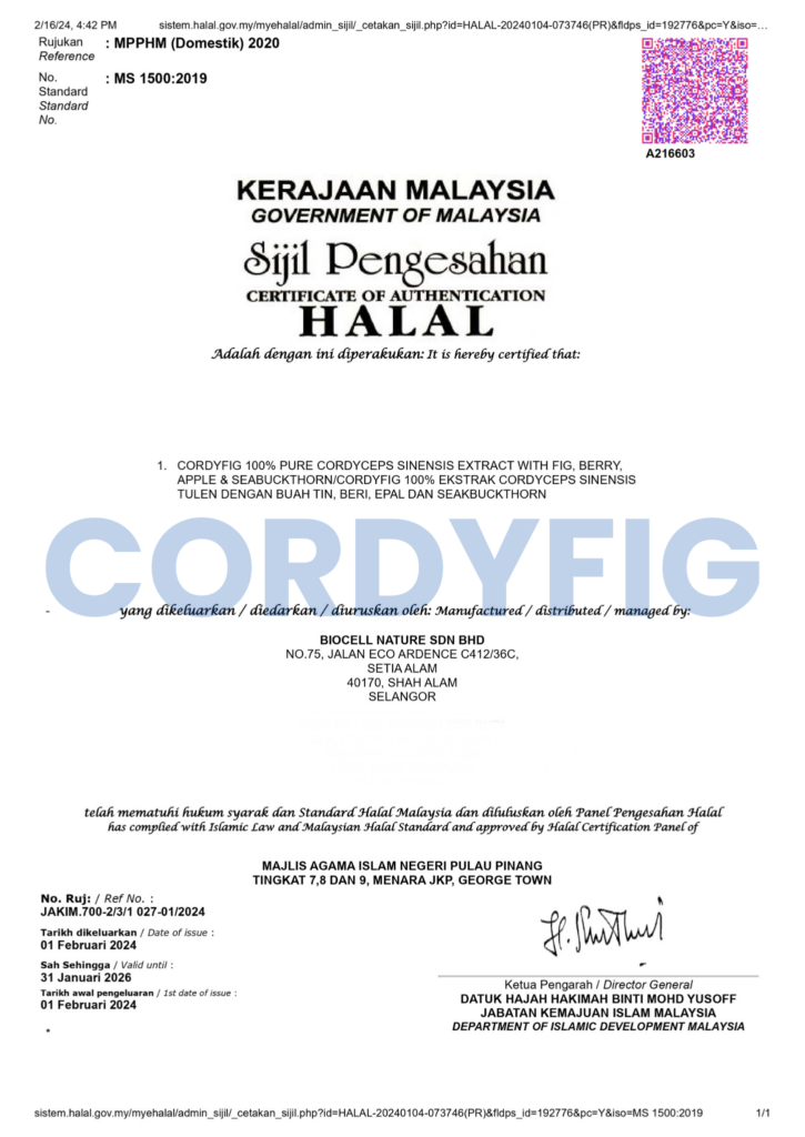 Selamat untuk dimakan terutama mereka yang menghidap pelbagai jenis penyakit yang berusia 18 tahun dan ke atas. Disahkan halal oleh JAKIM